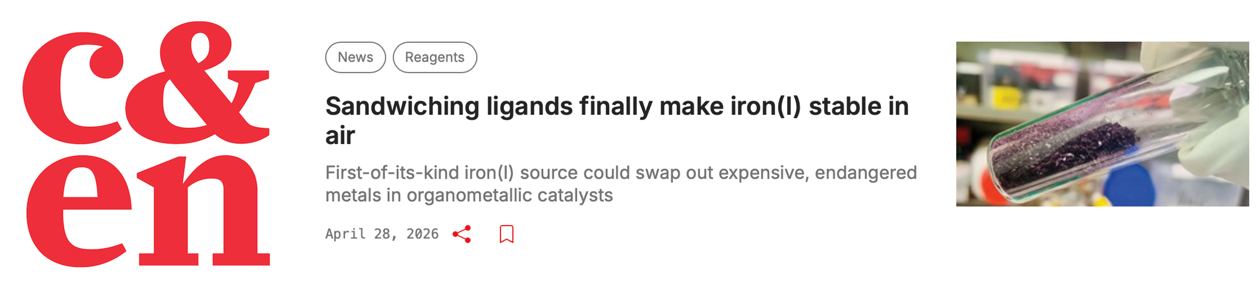 Our recent paper in JACS has been highlighted by Chemistry & Engineering News. Thanks to journalist Louisa Dalton for her interest and discussion.